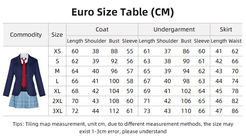 - Package included: Coat+ skirt+ undergarment+ tie+ collar+ socks