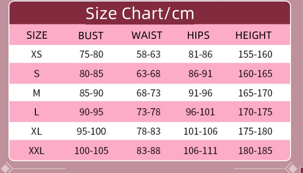 - Package included:Top, skirt, gloves, jumpsuit, collar, short bow on the back, long bow on the back, chest decoration, prop on the back, headphone decoration, headband, invisible shoulder strap