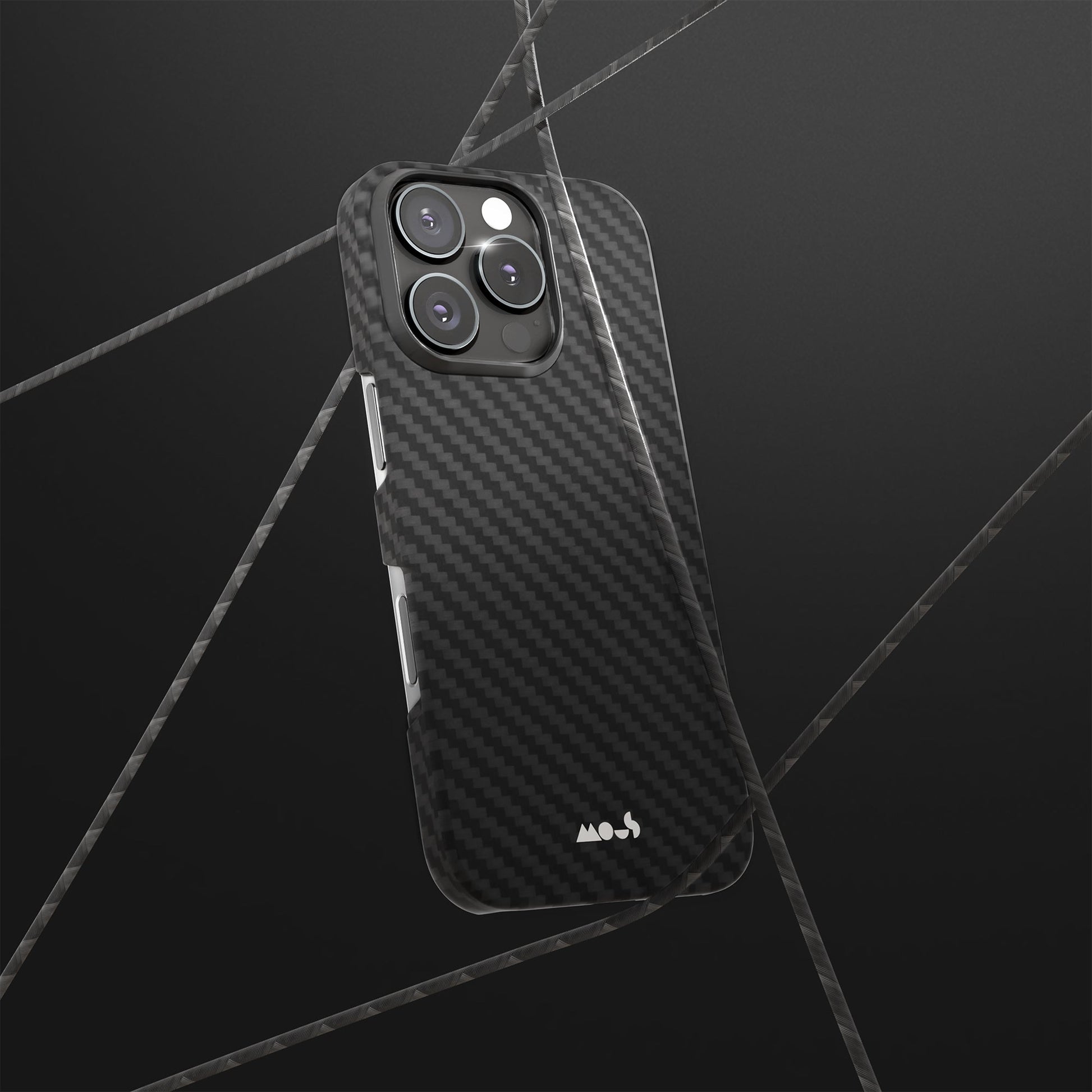 Our thinnest case, moulded from aramid fibre for everyday durability with a seriously slim profile, strategic cut‑outs for unhindered button access and full MagSafe®/Qi2 compatibility.